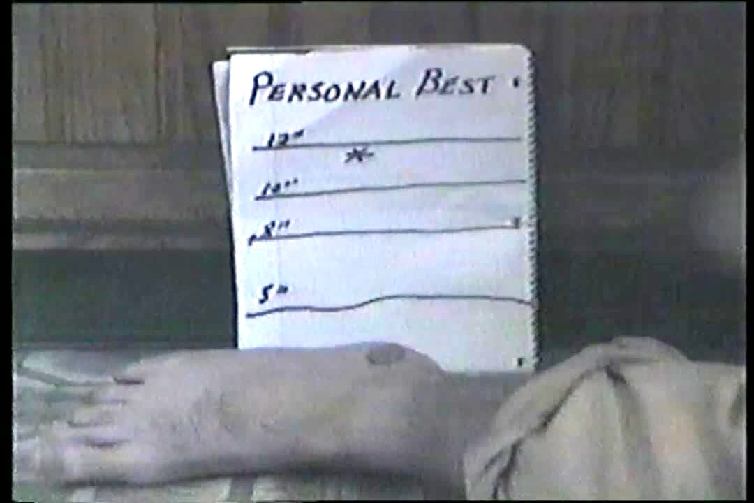 AA Useless Talent: Man flips coins up into the air off of his ankle bone. Has a sign to measure how high he can make the money go. Foot.
