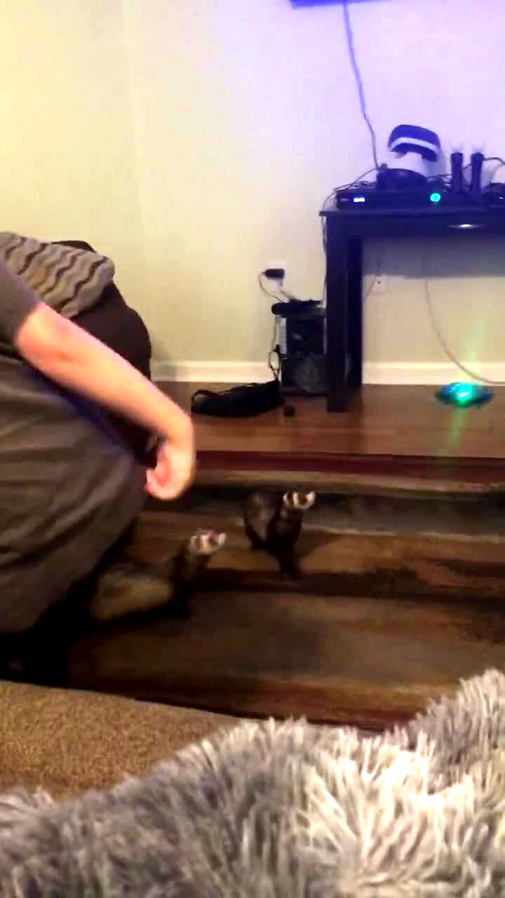 A young girl asks her father if he's okay after his foot breaks through the living room ceiling while he works in the attic. Home security footage.