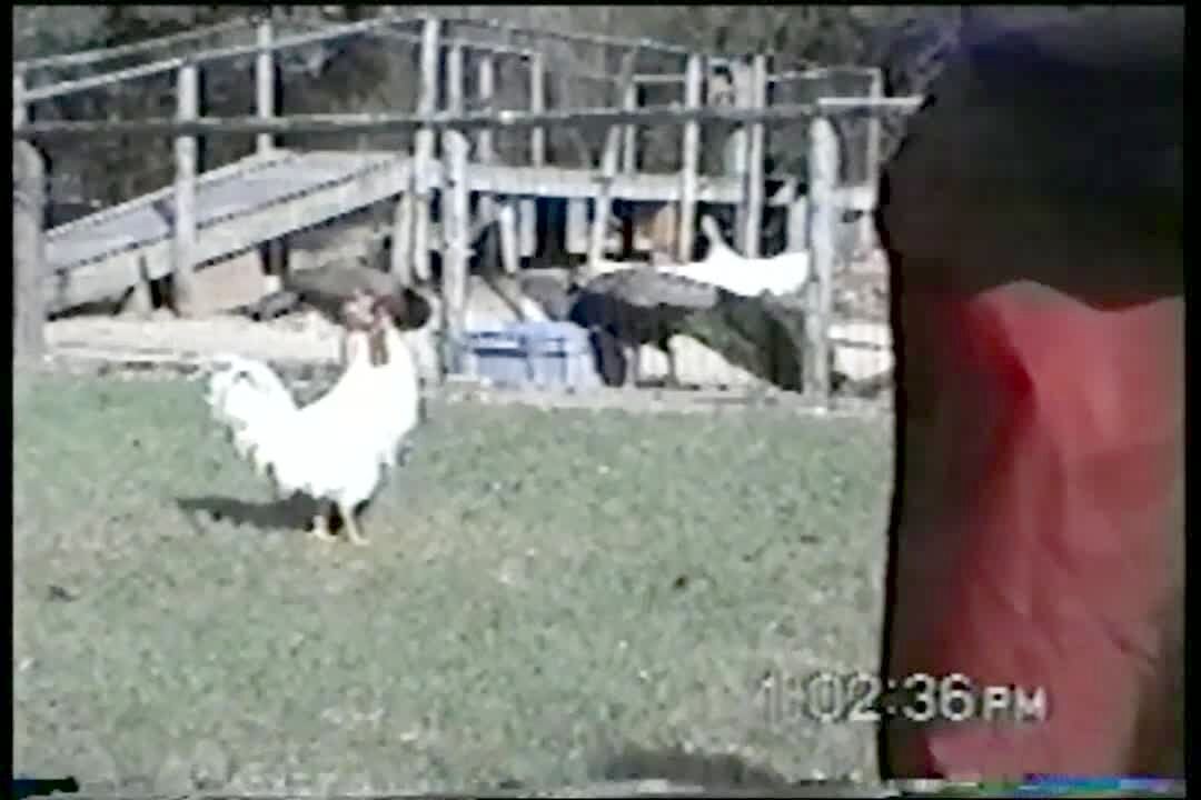 At a farm a young boy's loose tooth is tied to a rooster's foot, then his older brother sets the chicken down on the ground and it pulls the tooth out of his mouth as it walks away. Their mother calls this a "hillbilly tooth pull."
