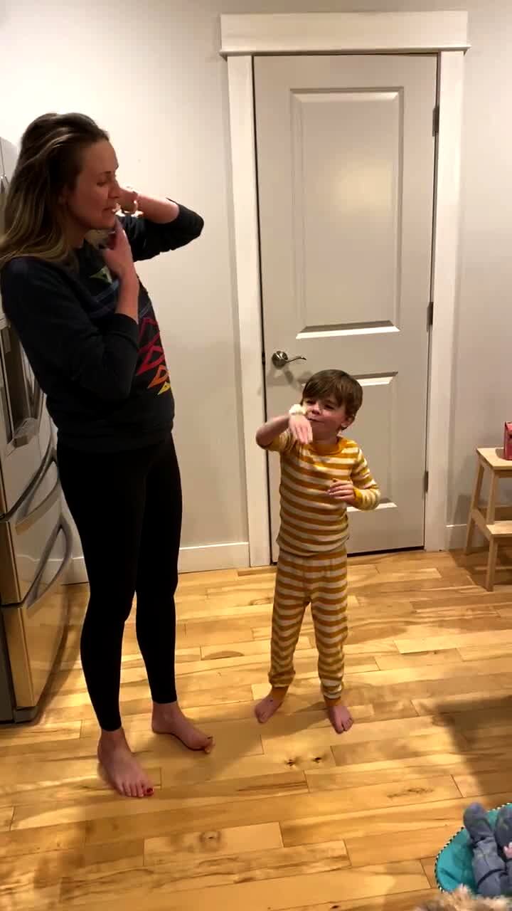 A woman trips and falls over a dog toy on her way out of the house. Security footage.