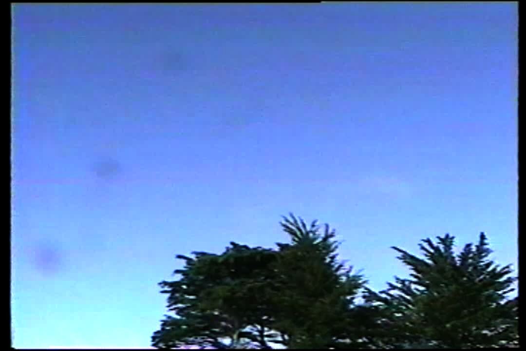 A woodpecker pecks at a security camera in a yard. Security footage.