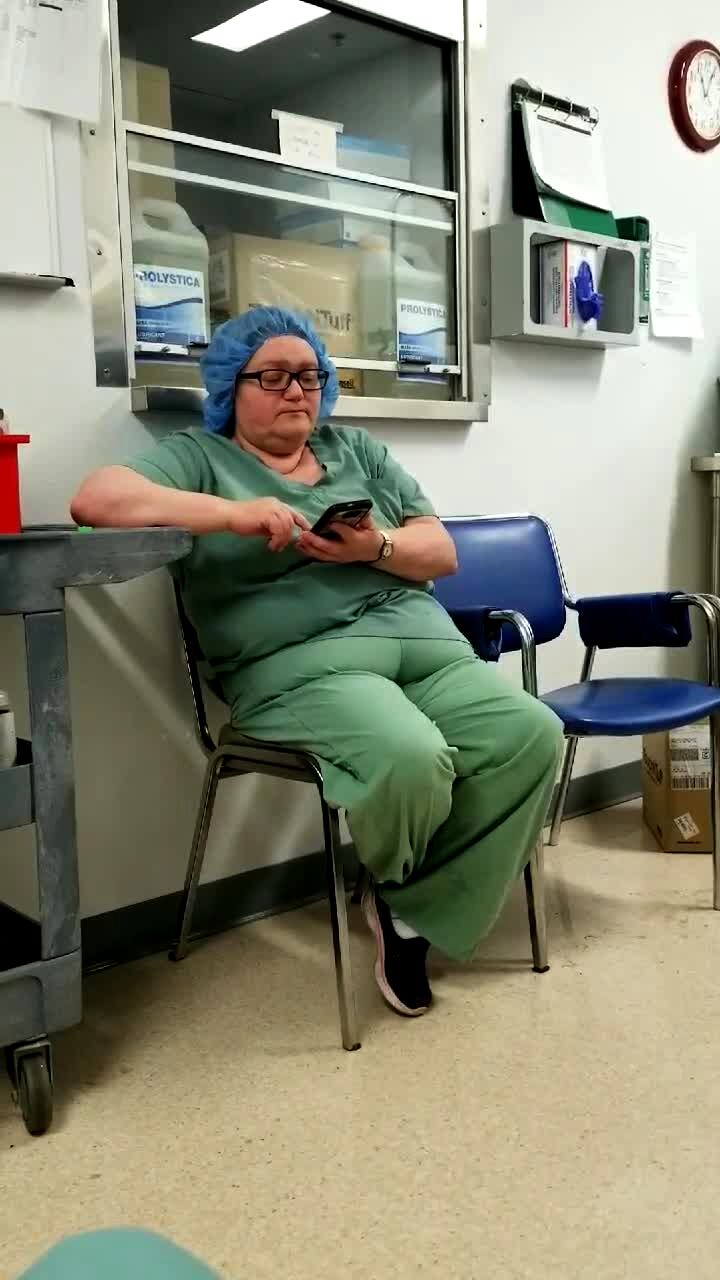 A woman sees a fake mouse toy in a room at work and screams and runs.