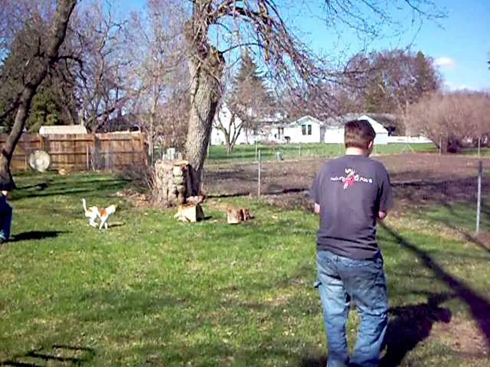 "Hair Plane" In a backyard, 2 men fly radio controlled airplanes. One of the planes flies right at the camera and lands on the camera man's head. The camera pulls back to show the plane still on his head. Remote control.
