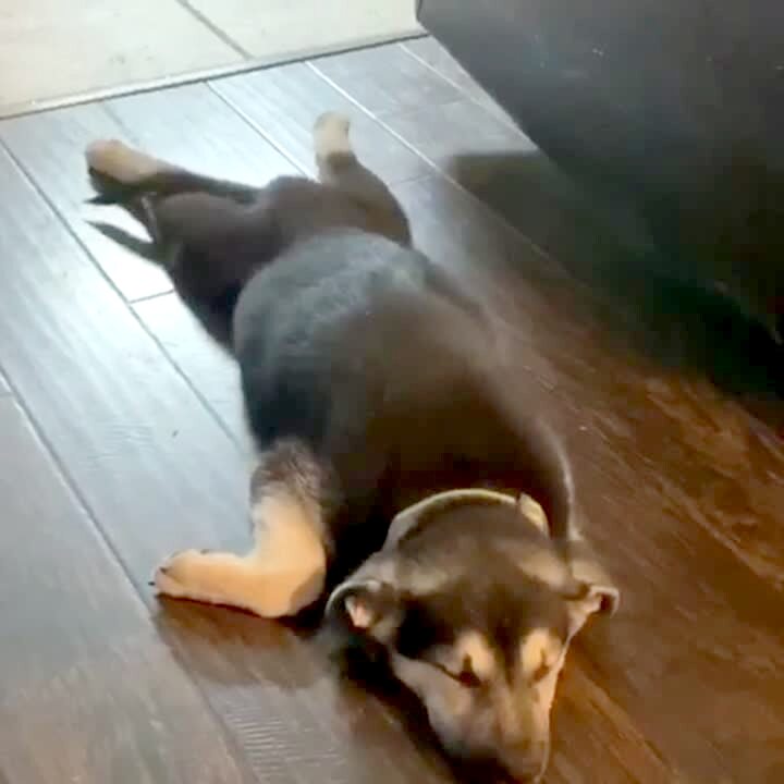 A puppy dog barks in a dream in his sleep and his entire stomach shakes.