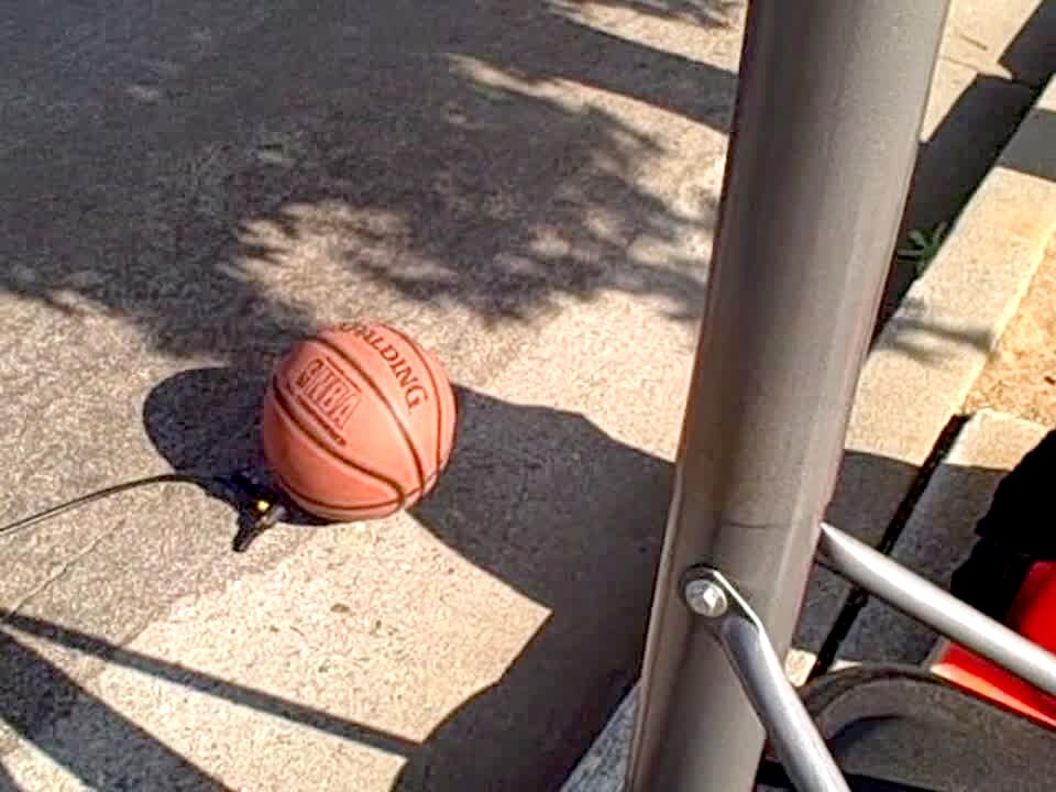 2 teen boys pump up a basketball and it explodes. E-mailed submitter asking for more footage.