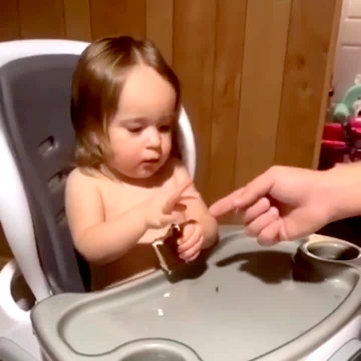 "Eye-Rolling Rascal" A baby boy tries to take his spoon from his mom, but she says no. He glares at her, and she tells him she can say no. Then he rolls his eyes at her.