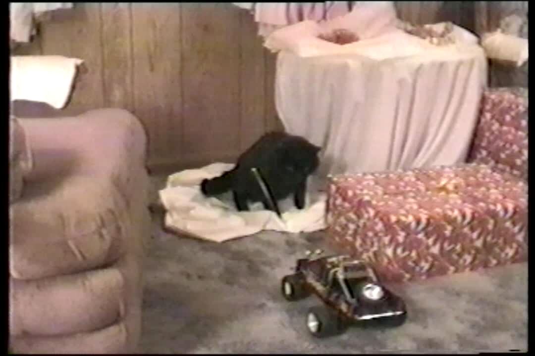 Cat attacks remote control car.