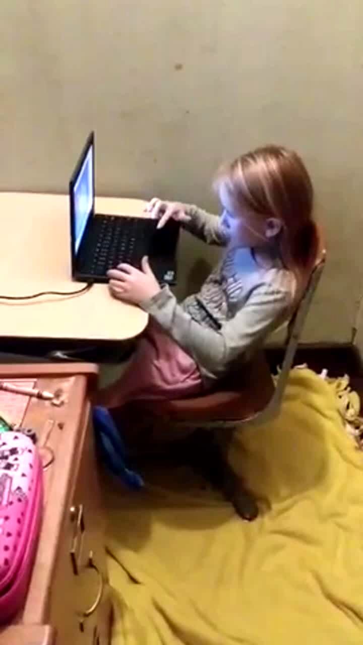 A tot girl does the disappearing human trick and drops the blanket and is gone.But then, she runs back across the hallway.