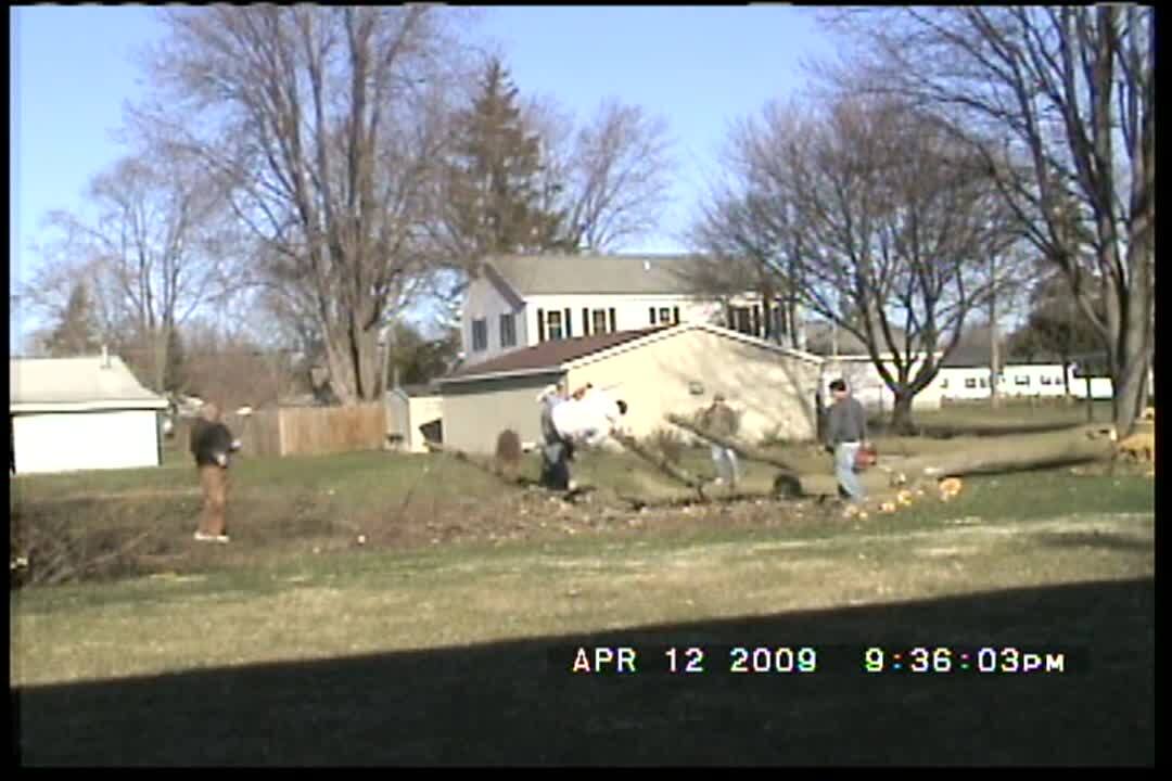 Two young boys stand in the living-room and holds rolls of toilet paper and Lysol spray. There is paint smeared all over the walls and splattered on the couch and the older brother says "We kinda got outta control with the paint. We lost our minds." and his mother says they won't get any more paint.