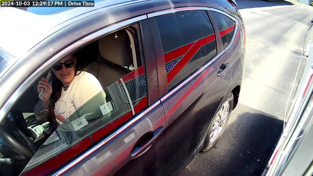 A young girl feeds her mother at a restaurant and she shoves her entire hand in the woman's mouth and grabs the back of her head and tries to push it deeper.