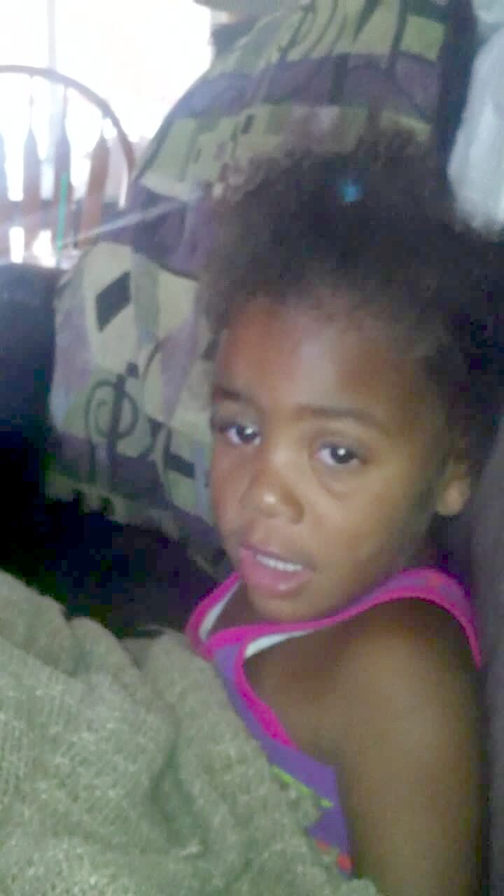 A young girl lies on a bed while her dad attempts to remove her loose tooth. However, the dad mistakenly pulls a different tooth and the girl is very upset.