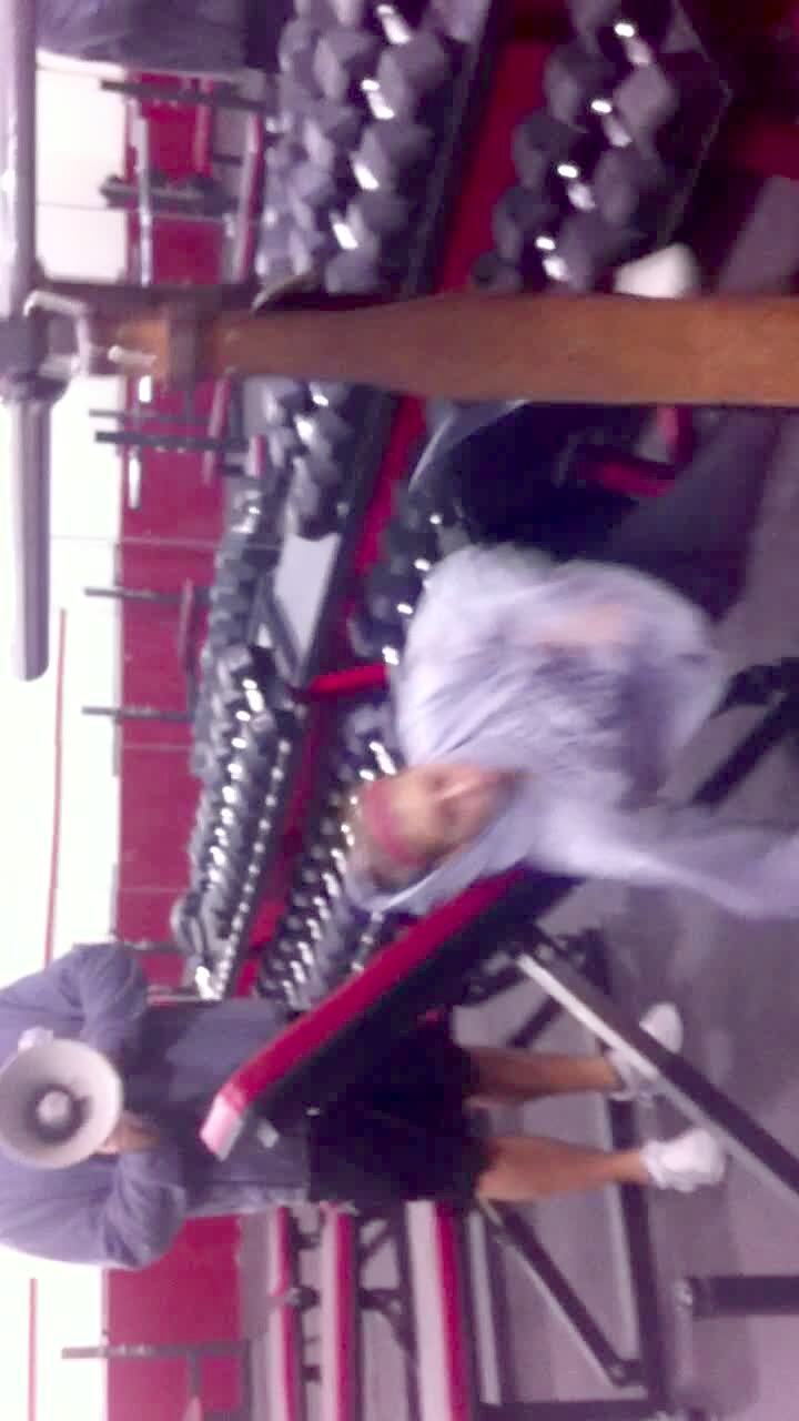 A man wakes a teen girl sleeping in a weight room with a siren horn.