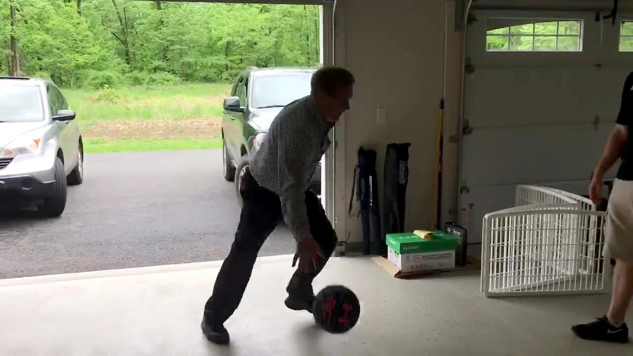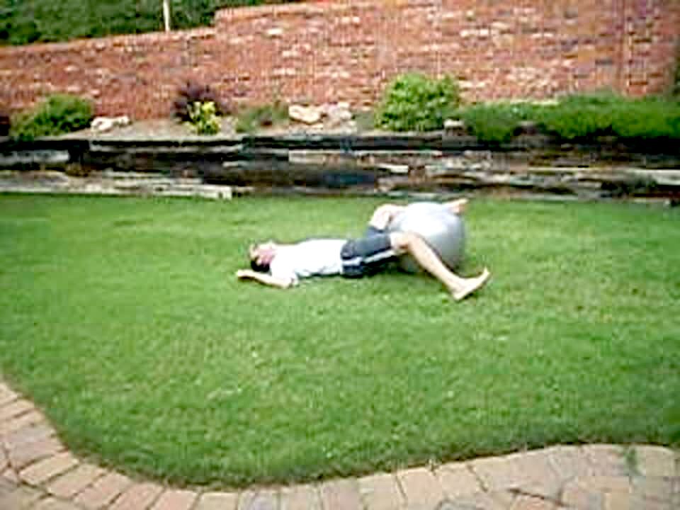 Man falls when he tries to jump on top of an exercise ball. Boneheads.