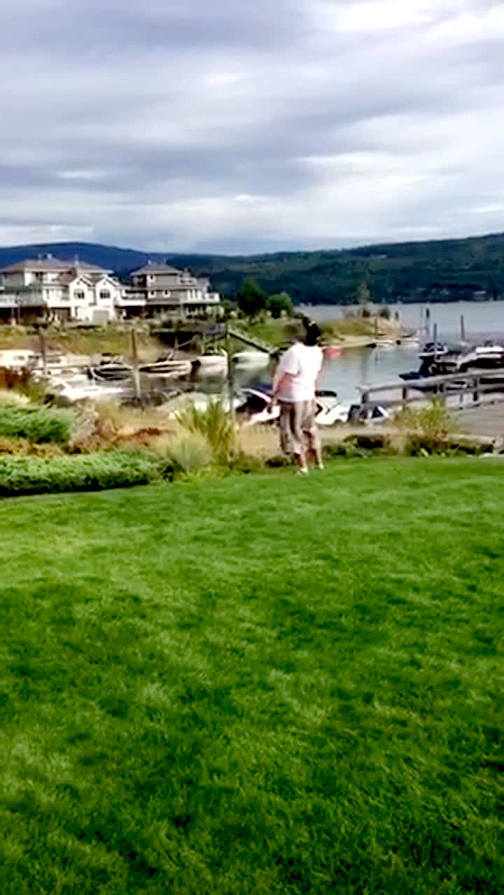 "Four Square Falling" Man playing 4 square falls into a pool while chasing the ball. Camera loses focus.