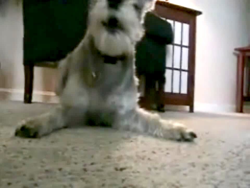 Hyper Scottie dog plays and runs around the house, gets close to the camera & barks.