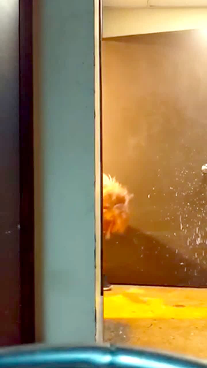 A man flinches and yells "oh my God" on a deck, and a woman gets up in a panic and breaks a planter as she runs away.