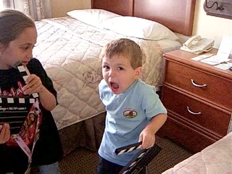 A teen boy repeatedly falls down on an icy front porch, then his dad follows him and falls too. Security footage. Music rights not cleared.