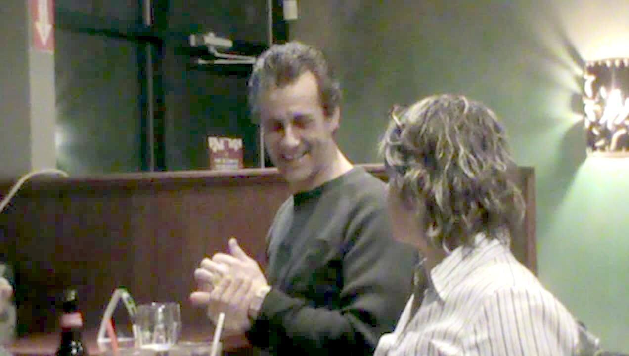 Woman talking about losing weight falls through glass table she's sitting on.