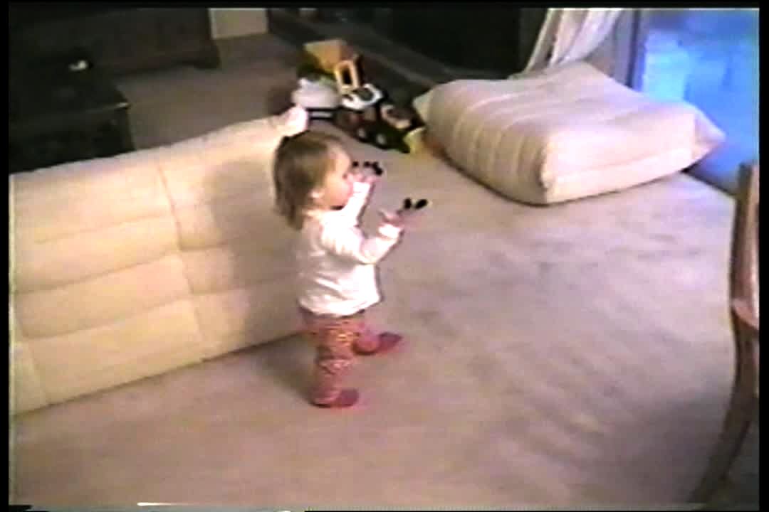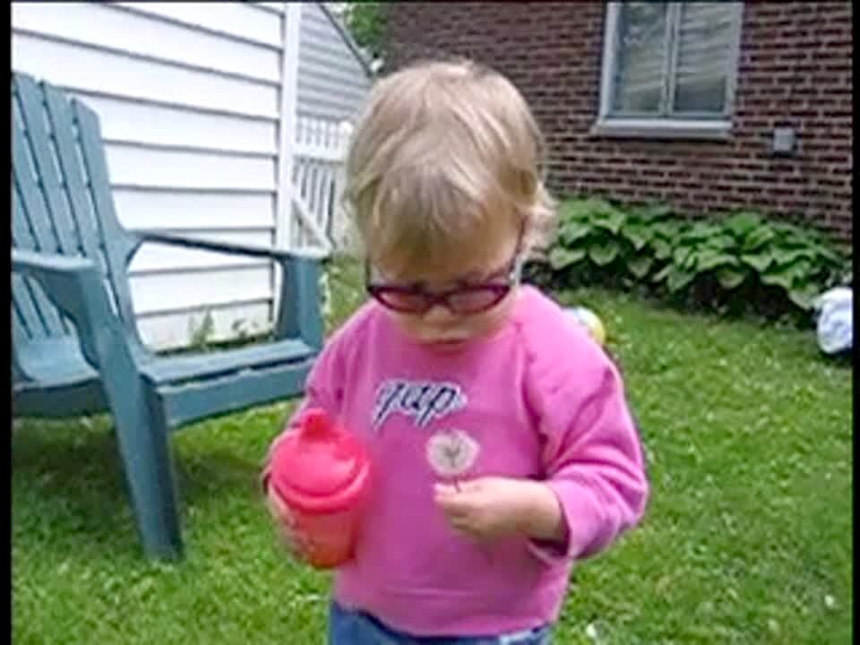 A tot girl covers her eyes with a paper towel and says a magic word to make a bottle cap disappear but doesn't realize that when her eyes are covered, her dad takes away the bottle cap and brings it back each time.