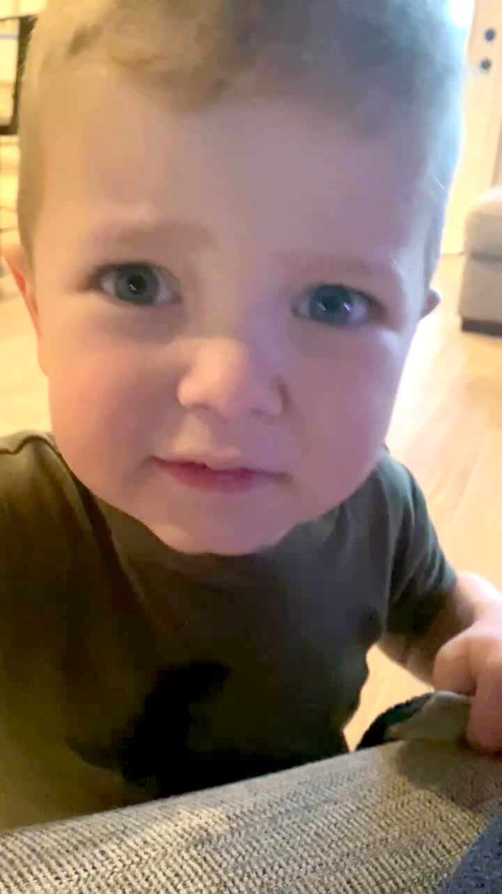 A tot boy whines. A woman tells the tot, "We don't have cookies for breakfast." The tot says, "I'm talking about that to be my appetizer."
