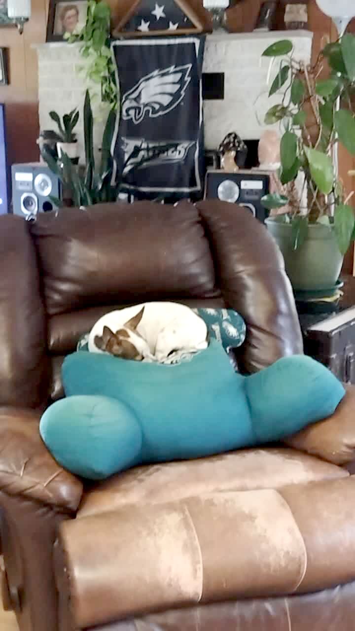 A man pretends to be on the phone with pest control and says they have squirrels. Hearing the word "squirrel," his two Jack Russel Terriers pop up on a recliner and bark in the living-room.
