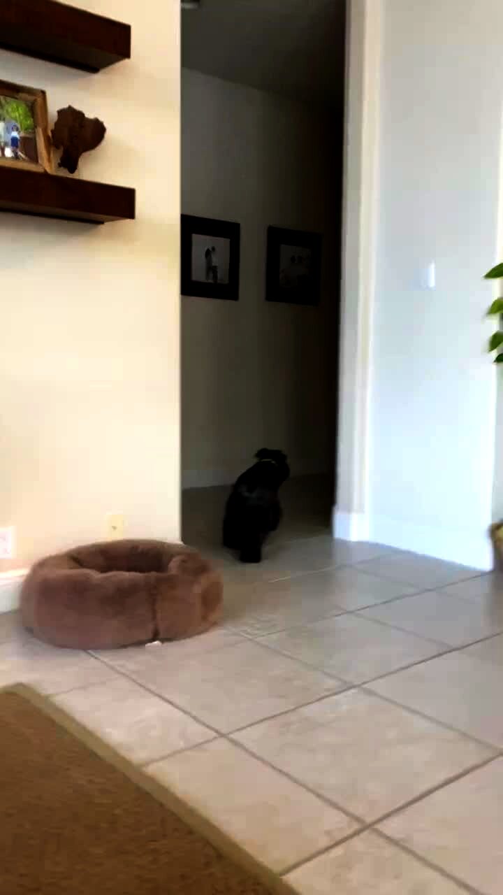 "Cutlery Canine" A Rottweiler dog rummages around in a kitchen when he pulls out a knife out with her mouth then stares at the security camera as a woman talks to her through it. Security footage.