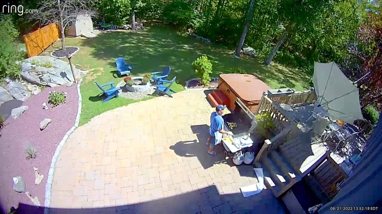 A man steps on a box and gets his foot stuck and he tries to kick it off but slips and falls in a storeroom. Security footage.
