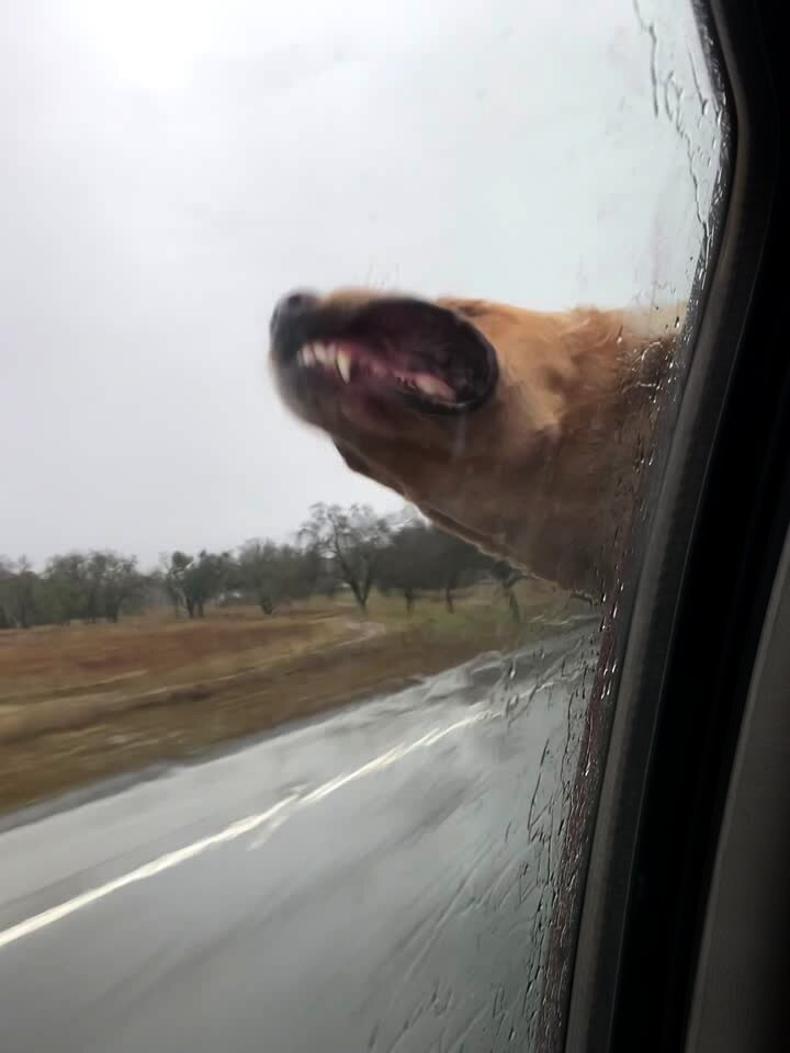 A woman attempts to put her dog into a car but struggles to keep up with him and stumbles and falls into the car door instead. Security footage.