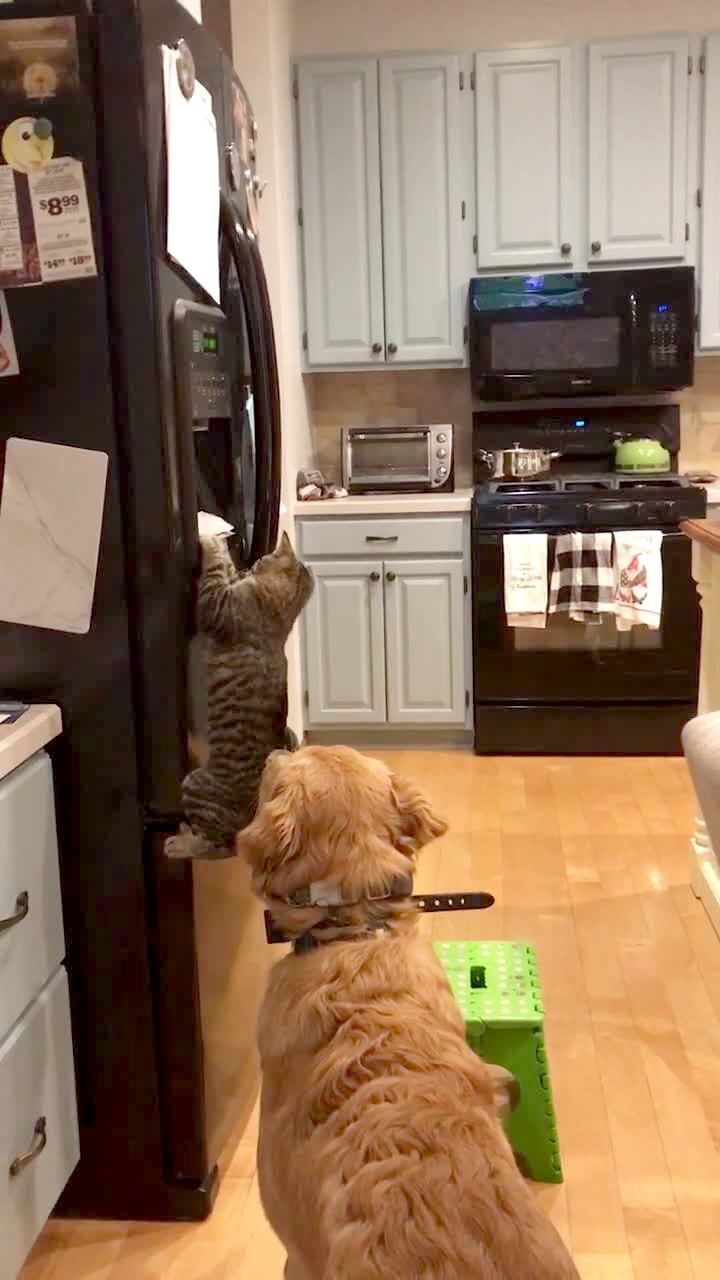 Two young girls hold a young boy by his hands and feet to swing him into a backyard swimming pool. But a doodle dog runs past them and the dog is bumped into the pool.