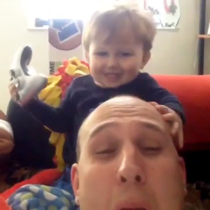 A tot boy repeatedly smacks his father on the head at home, then hits him with an Xbox controller.