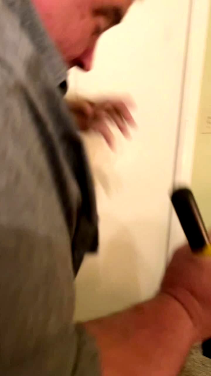 A man uses a broom to get a live chipmunk out of the house. He screams throughout.