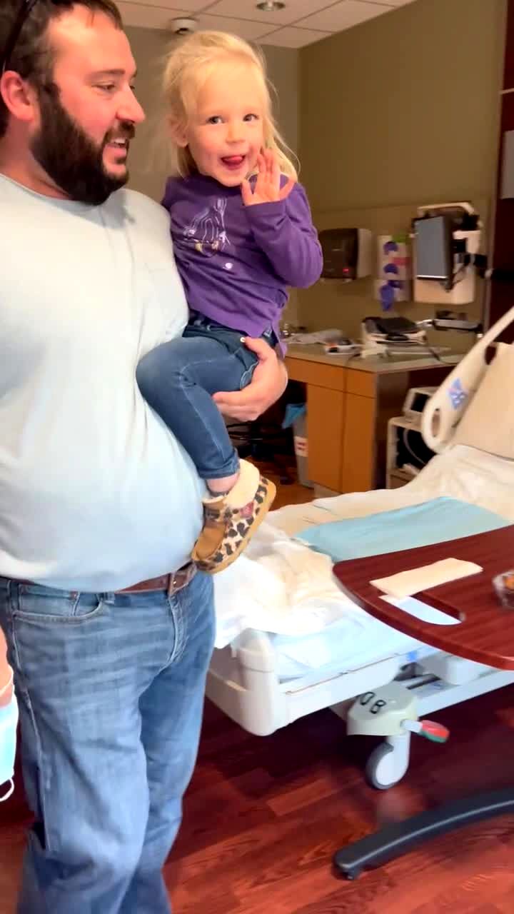 A young girl runs straight into the glass door as she's leaving an office. Security footage.