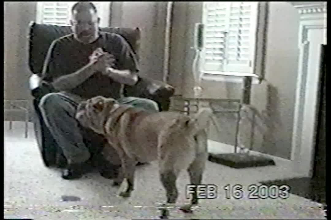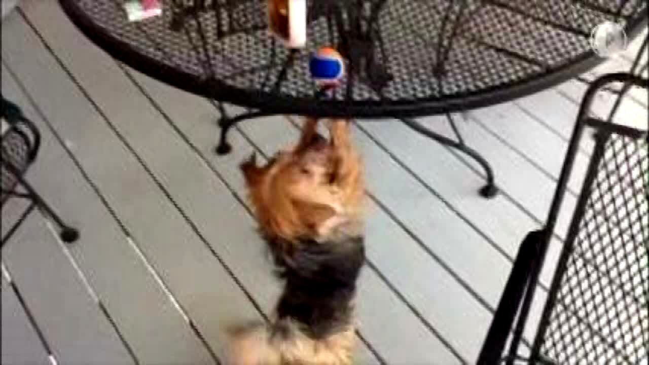 DOG WANTS TENNIS BALL P.O.V. dog being swung in circles holding onto ball. (with pre set up)