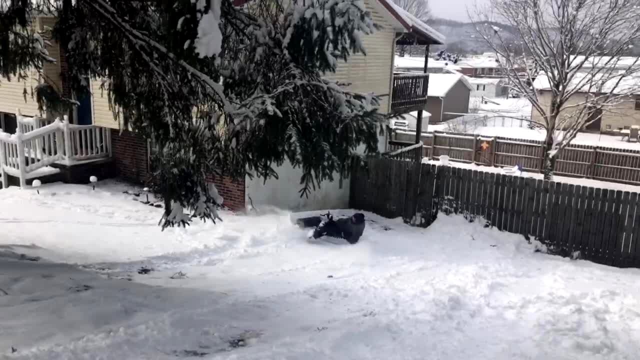 A man slips and falls down a staircase in his home. Security footage.