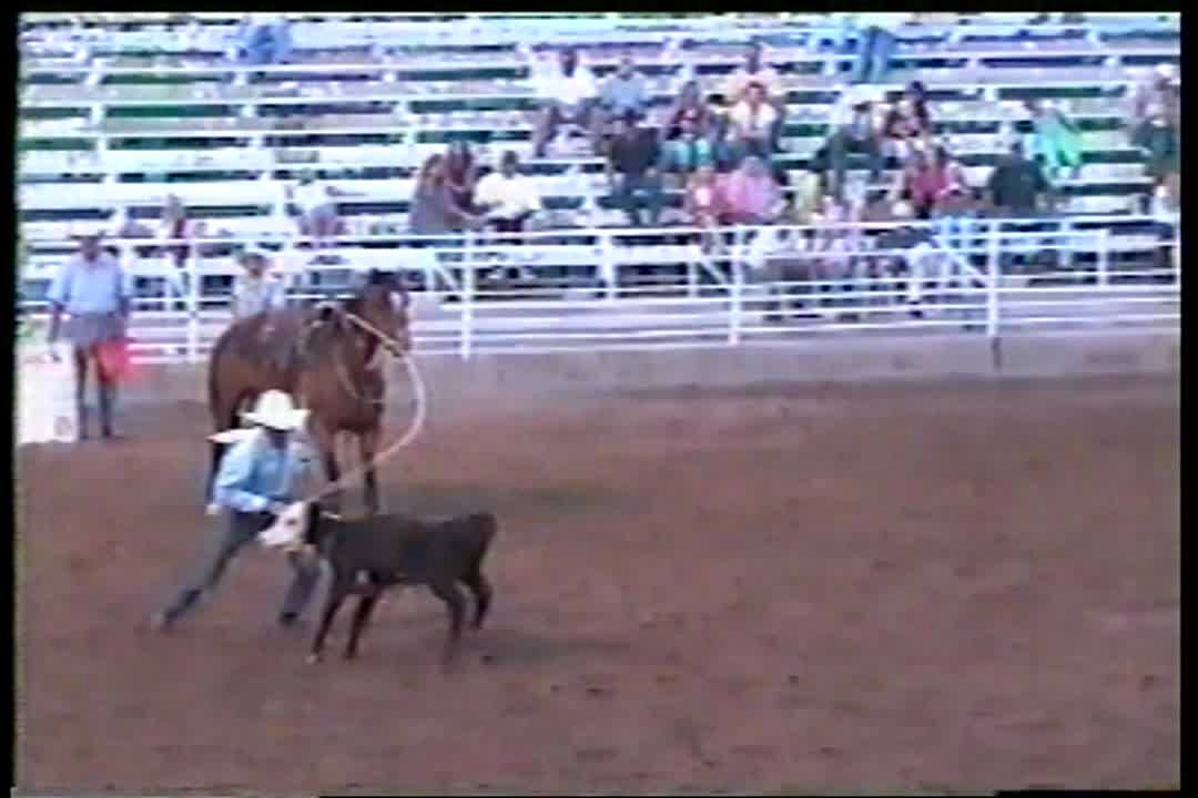 Man rides horse, horse bucks up onto its hind legs & man falls off. Horse tips over backwards onto man. With recovery.