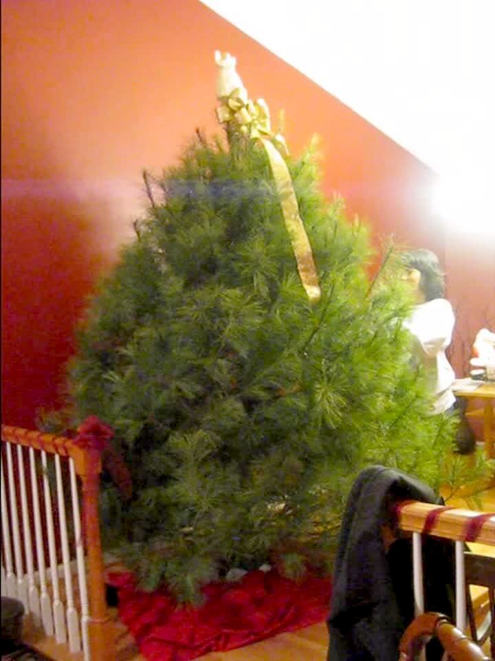 A young boy sets a teddy bear on top of in inflatable reindeer in the living room. The reindeer starts to fall and the boy tries to catch it. The bear falls and the boy throws the reindeer.
