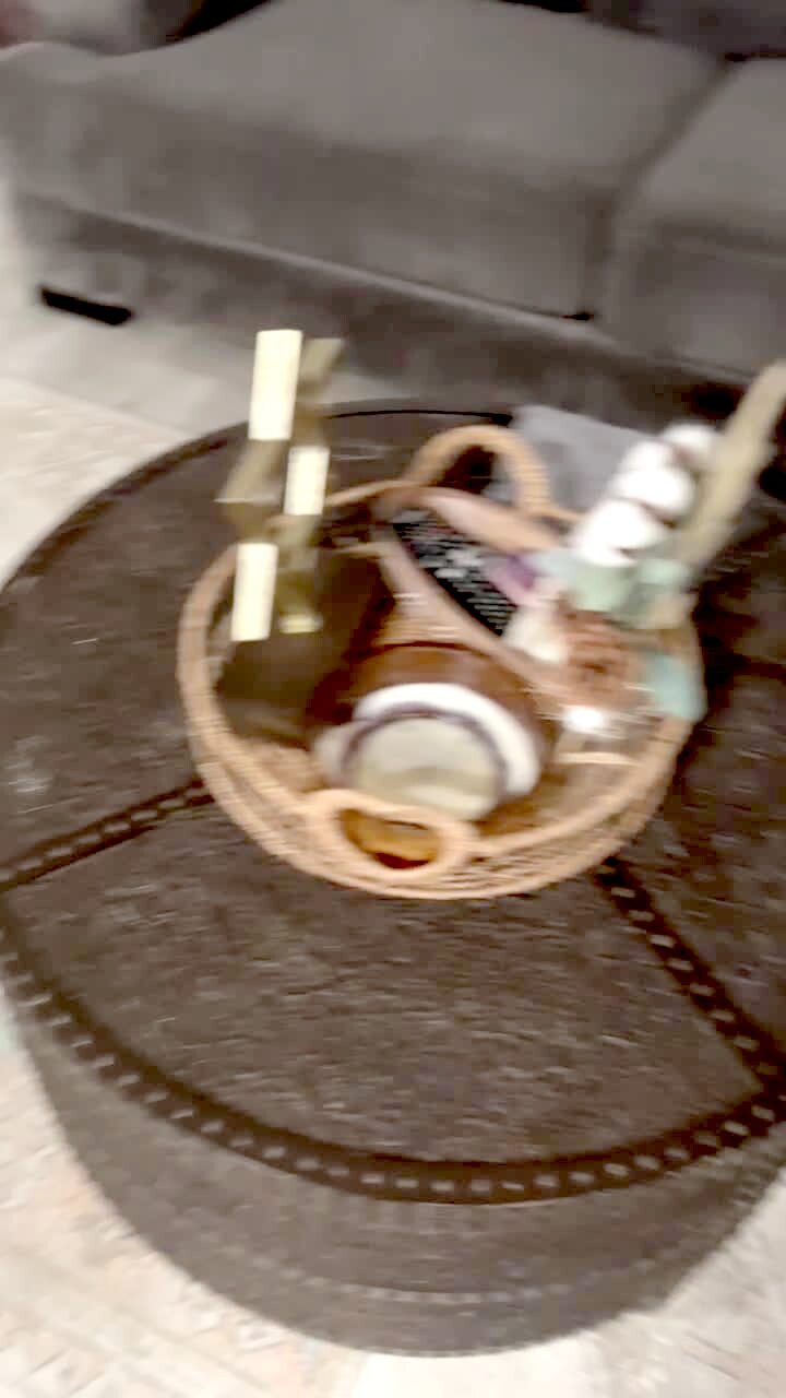 A dog stands and sits under a coffee table to scratch its back in the living room.
