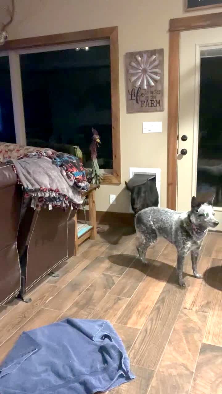 Two dogs sleep on a couch. A woman gasps. The dogs get up at the same time and run off the couch. Gasp at Your Dog Challenge