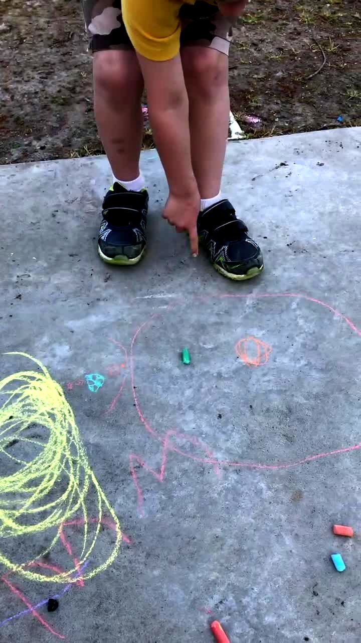 "All the Planets and One Big Moon" A young boy shows a woman his chalk art of the solar system on a sidewalk. Then she asks another tot boy what he drew, and he says "I drew my butt." Brothers. Yard.