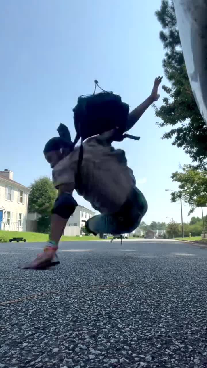 A teen boy begins to "speed wobble" on his electric skateboard when he zooms down a street, loses control and crashes into the camera.