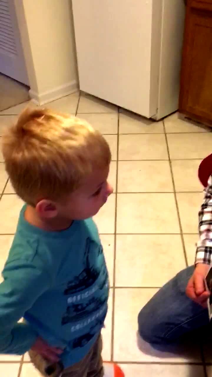 A young boy runs through the house with a boxing glove and punches the camera right out of his father's hand.
