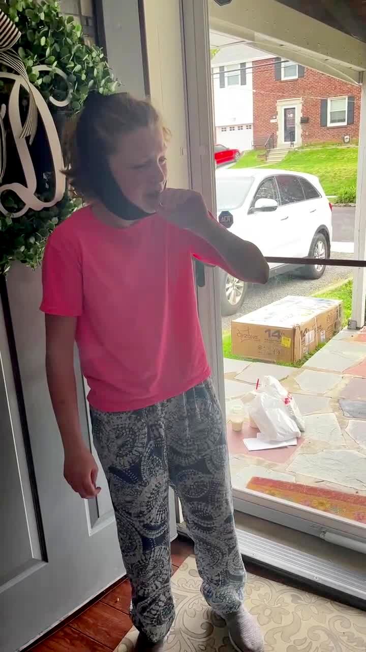 A young girl enters a house after oral surgery. Loopy from the anesthesia, she looks at her dog, cries and leaves the house.