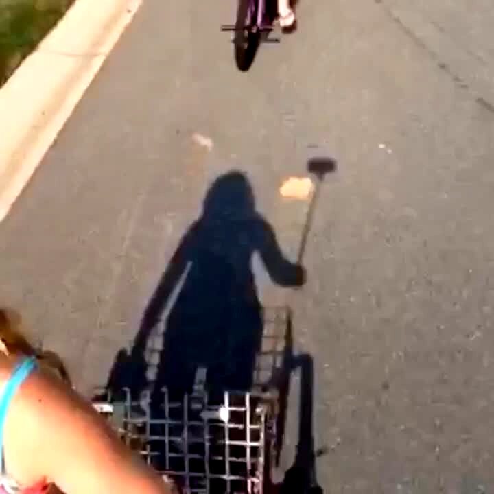 A young girl repeatedly says that she is not scared of a pond. She then she climbs over a wooden fence, which breaks and dumps her into the pond. TikTok video.