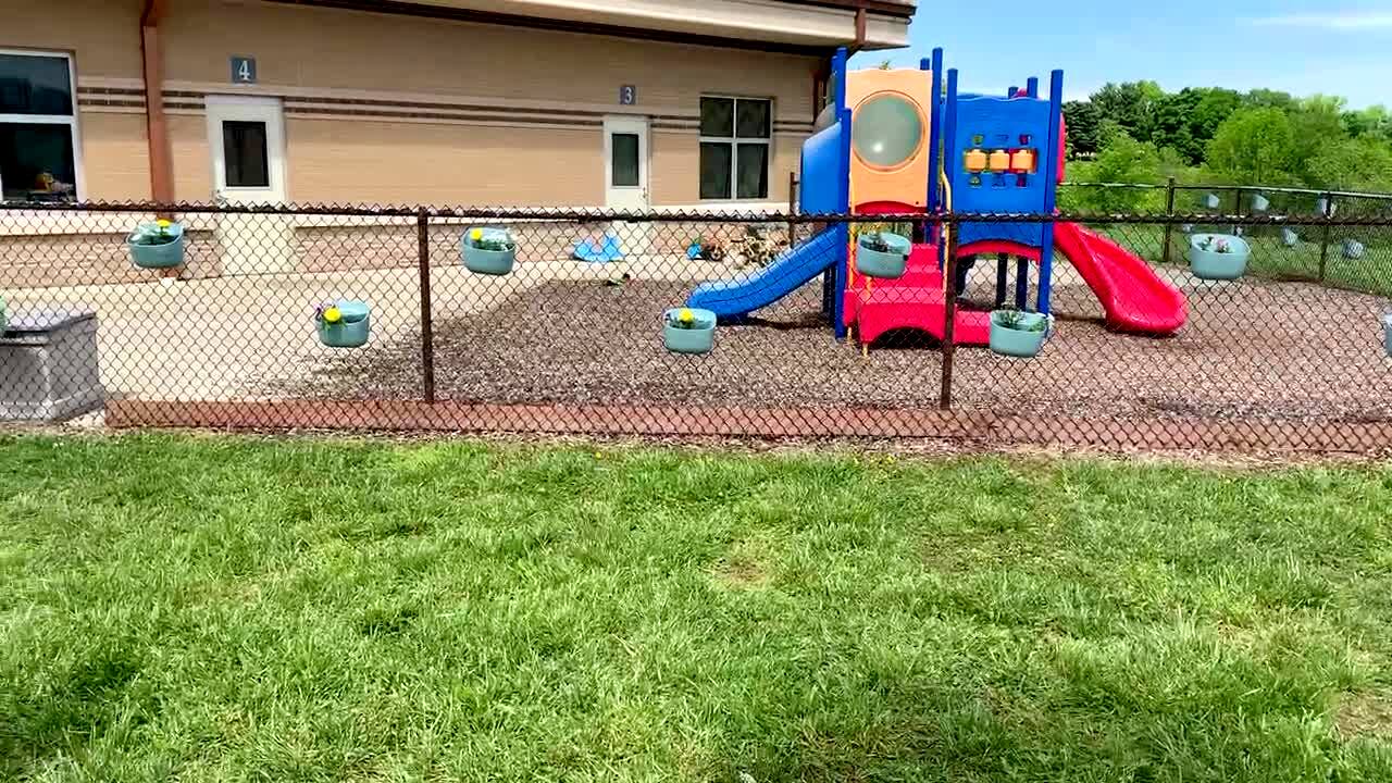 On an outdoor deck, A Hulk themed party goes on. A tot boy punches a cardboard wall of bricks with his Hulk gloves. A younger tot boy babbles and sits down on one of the fallen cardboard brick walls and falls right through and cries.
