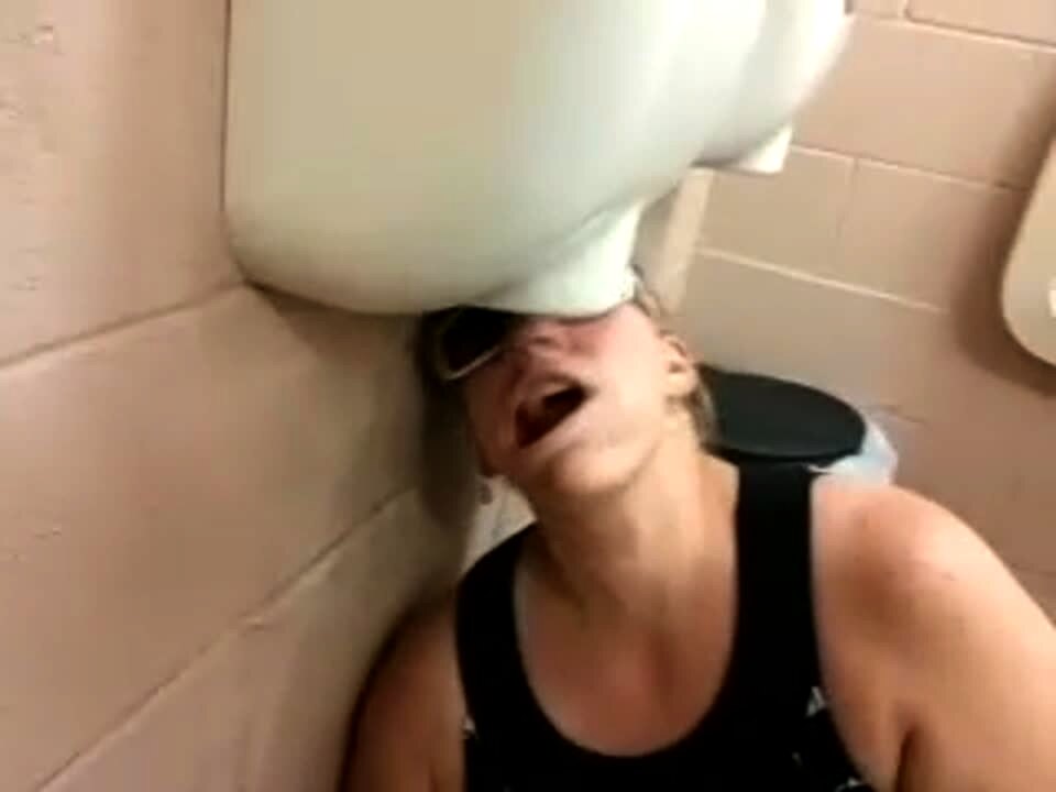 A woman sits on a sink to pee in a public bathroom and the sink breaks.