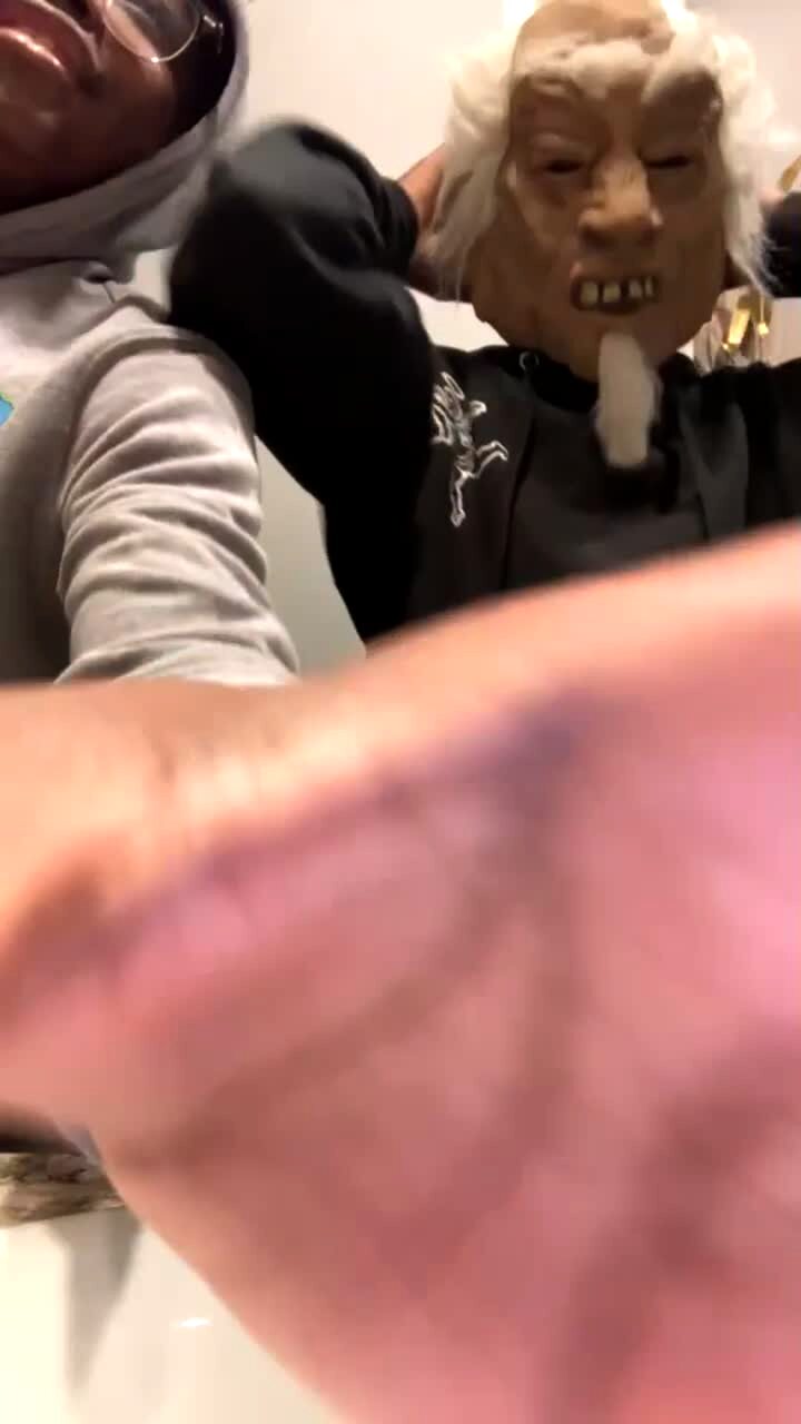 A man and woman do the Tortilla Slap Challenge in a living room. The man loses round of "Rock Paper Scissors," so the woman hits him with a tortilla. The tortilla breaks, and half of it lands on his head.