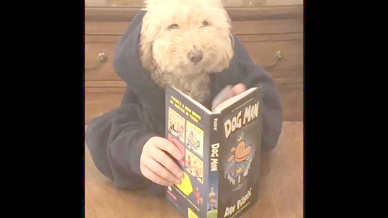 "The Running of the Bulldog" A dog chases a balloon around a little girl's bedroom and knocks over anything in it's path.