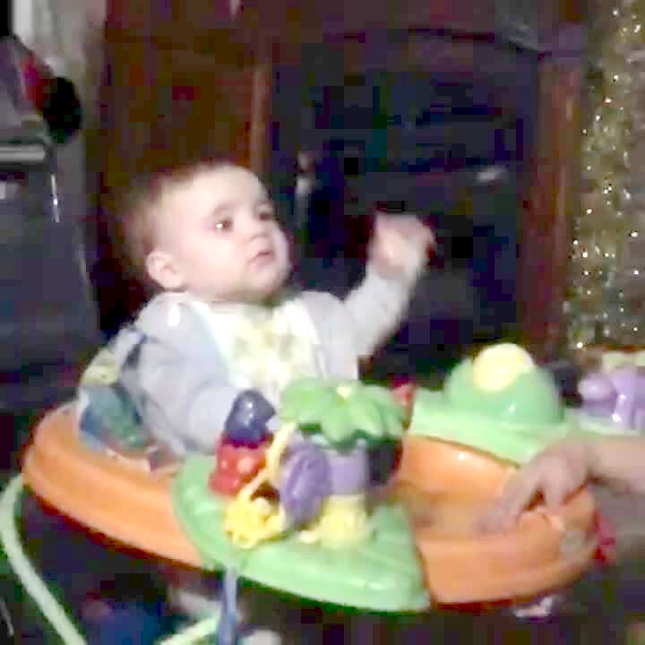 A young boy carries a cake and starts to sing, "Happy Mother's Day" to the tune of "Happy Birthday." The tray slides and he drops the cake on his younger brother and it slides to the floor. The older boy sobs.
