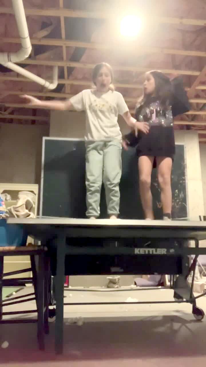 A young girl drives a power wheels car up to the camera, stops and says, "That was fun", her tot sister cries next to her and says, "that was not fun", then the girl drives away in the desert.