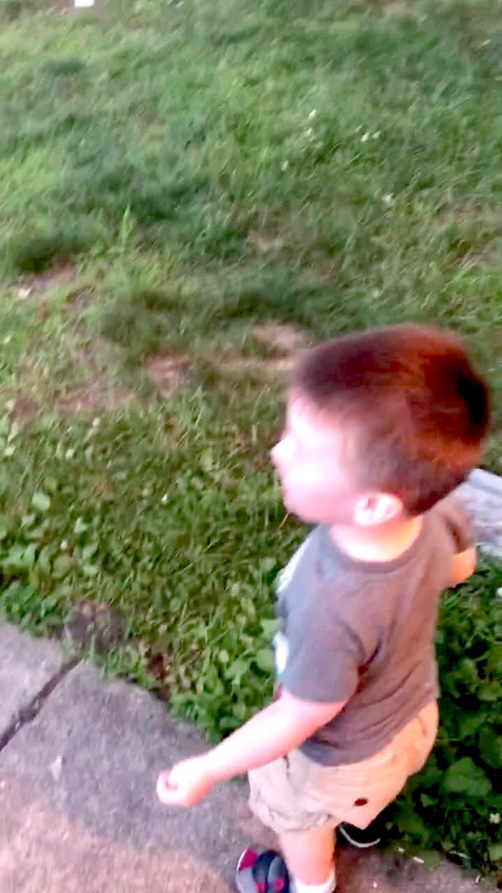 A young boy starts dancing to a song while his mother films him. He picks up a can of paint with a loose lid and it spills paint down the front of his shirt and all over the floor. Music rights not cleared.